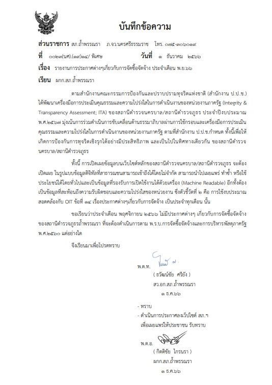ประกาศการจัดซื้อจัดจ้างเดือนพฤศจิกายน 2566