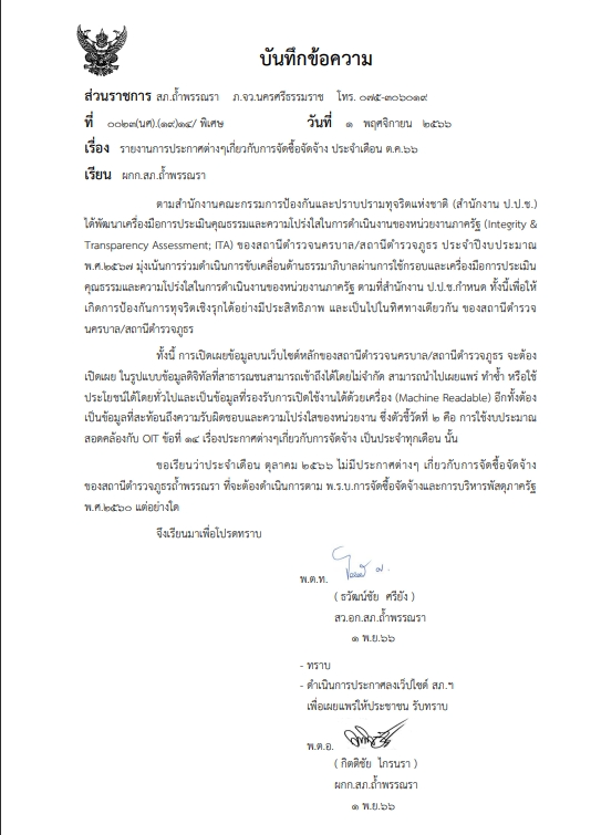 ประกาศการจัดซื้อจัดจ้างเดือนตุลาคม 2566