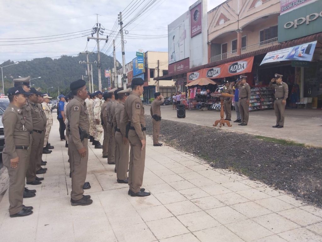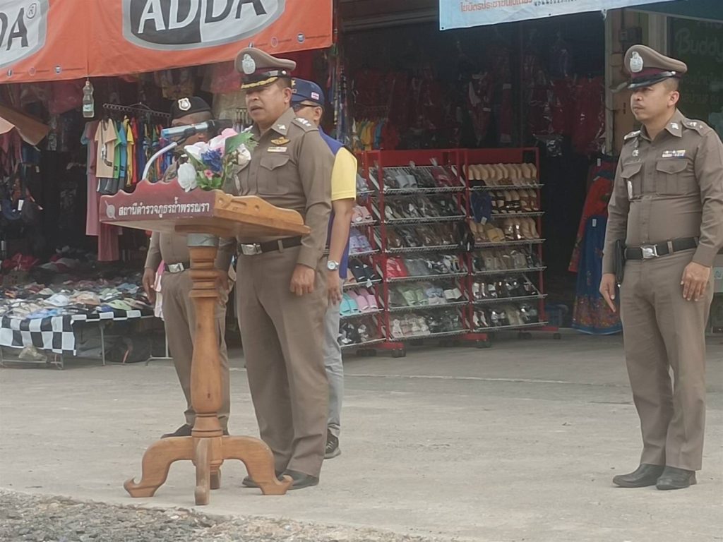 พ.ต.ท.ณัฐวิทย์ โอทอง รอง ผกก.ป.สภ.ถ้ำพรรณรา พ.ต.ท.สนอง ประมวลศิลป์ สวป.สภ.ถ้ำพรรณรา พ.ต.ท.ธวัฒน์ชัย ศรียัง สว.อก.สภ.ถ้ำพรรณรา พร้อมข้าราชการตำรวจ สภ.ถ้ำพรรณรา สนธิกำลังฝ่ายปกครอง หน่วยอาสามัครหน่วยกู้ภัยต่างๆ ร่วมปล่อยแถวกวาดระดมกวาดล้างอาชญากรรม ตามมาตรการป้องกันปราบปรามอาชญากรรม การรักษาความสงบเรียบร้อยความปลอดภัยในชีวิตและทรัพย์สินประชาชน โครงการ “ป้องราษฎร์ ปราบภัย ทันสมัย ห่วงใยประชาชน”ในห้วงวันที่24-28 มกราคม 2567 ณ บริเวณหน้าธนาคารออมสินสาขาถ้ำพรรณรา ต.ถ้ำพรรณรา อ.ถ้ำพรรณรา จ.นครศรีธรรมราช