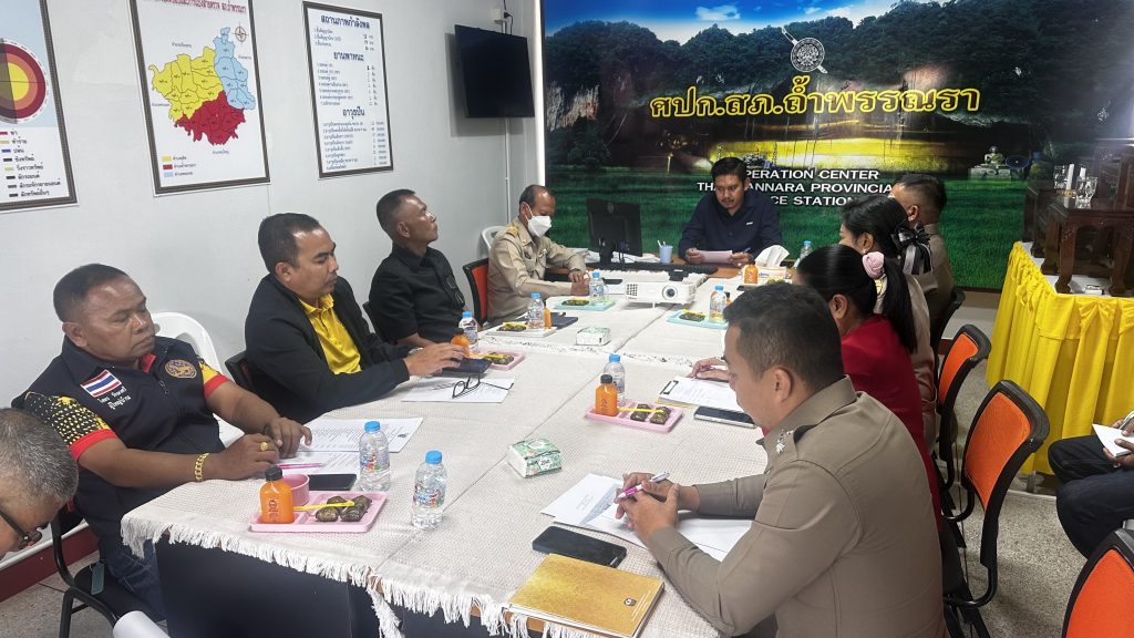 นายไกรศร ไม้เรียง (กำนันตำบลดุสิต) ประธาน กต.ตร. สภ.ถ้ำพรรณรา พร้อม พ.ต.อ.ชัยภัทร ศรีเรือง ผกก.สภ.ถ้ำพรรณรา พร้อมคณะกรรมการ กต.ตร. ร่วมประชุมแนวทางและอุปสรรคในการดำเนินงานร่วมกัน เพื่อแก้ไขปัญหาอุปสรรคในการดำเนินงาน และเสนอแนวทางการปฏิบัติร่วมกัน