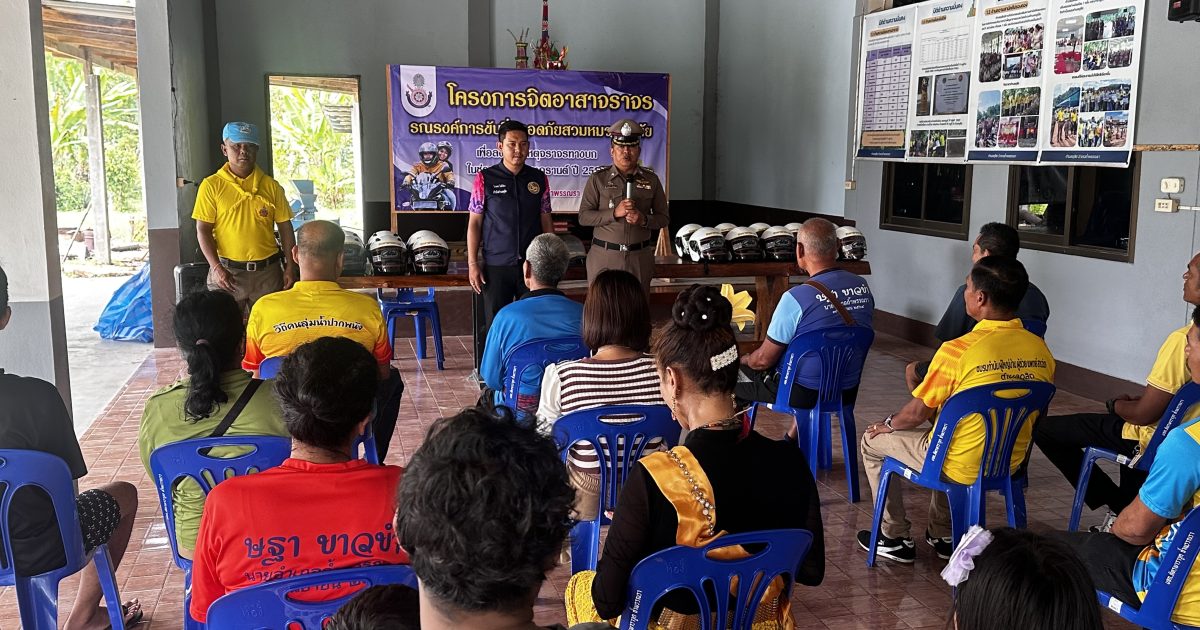 พ.ต.อ.ชัยภัทร ศรีเรือง ผกก.สภ.ถ้ำพรรณรา พ.ต.ท.ณัฐวิทย์ โอทอง รอง ผกก.ป.สภ.ถ้ำพรรณรา และ พ.ต.ท.สนอง ประมวลศิลป์ สวป.สภ.ถ้ำพรรณรา ร่วมตั้งด่าน และแจกหมวกกันน็อคโครงการจิตอาสาจราจร รณรงค์การขับขี่ปลอดภัยสวมหมวกนิรภัย เพื่อลดอุบัติเหตุในช่วงเทศกาลสงกรานต์ 2568