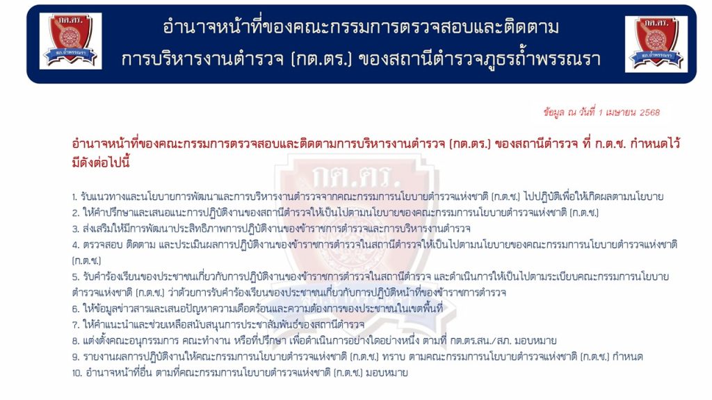 O4 ข้อมูลคณะกรรมการตรวจสอบและติดตามการบริหารงานตำรวจ(กต.ตร.) ของสถานีตำรวจ 2568